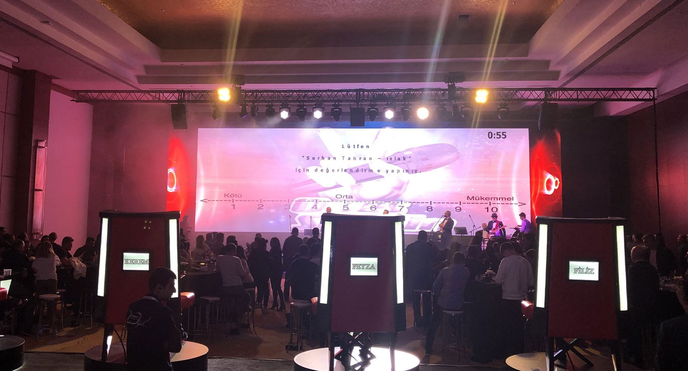 O Ses uygulamasına canlı orkestra veya kareoke sistemi, oylama ve puanlama sistemi ve döner koltuklar dahildir.