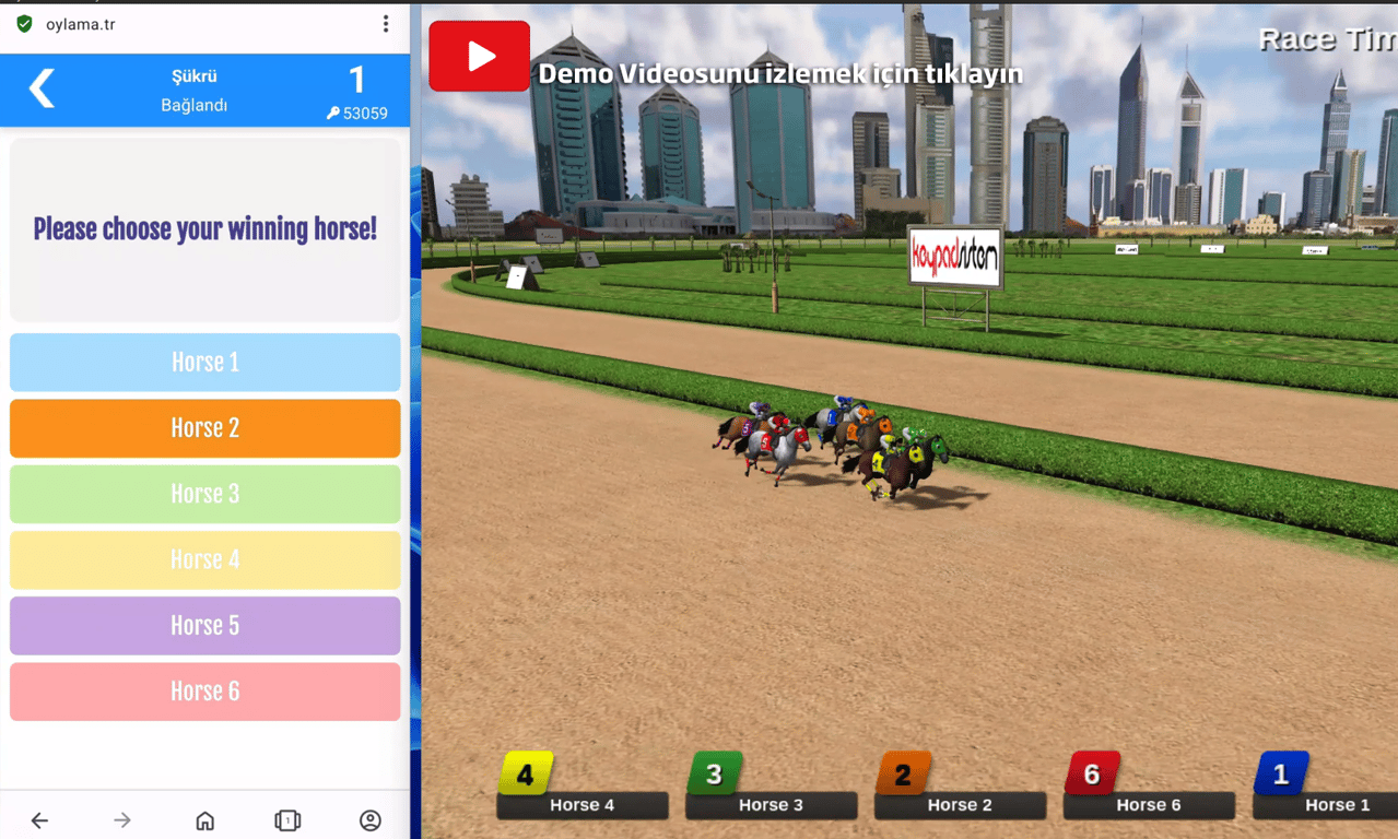 - Katılımcılar, kendilerine verilen keypad ile favori atlarını seçer.