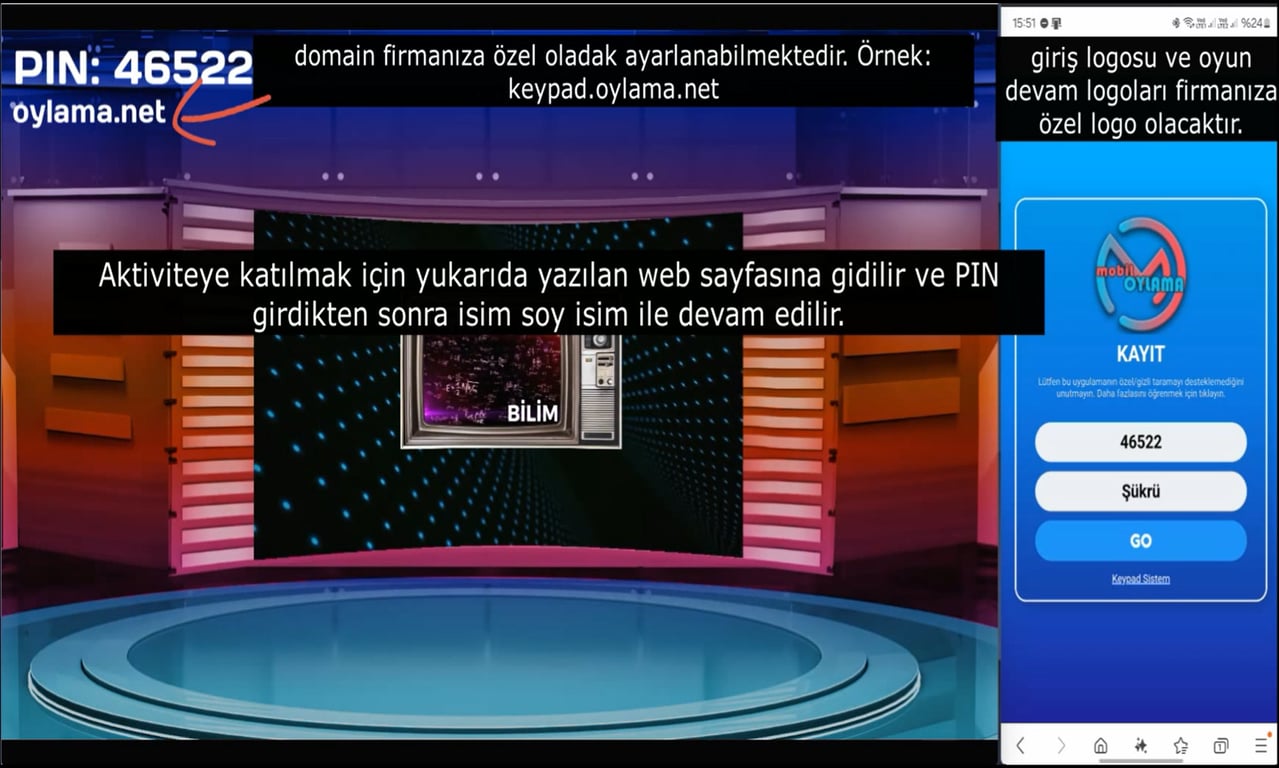 arışma keypad, mobil keypad veya Flashpad cihazları ile oynanabilmektedir. Gruplar halinde veya bireysel olarak katılım sağlanılmaktadır. Temponun hiç düşmediği müzikler ve görsel sorular ile eğlenceli bir aktivite yarışmasıdır.